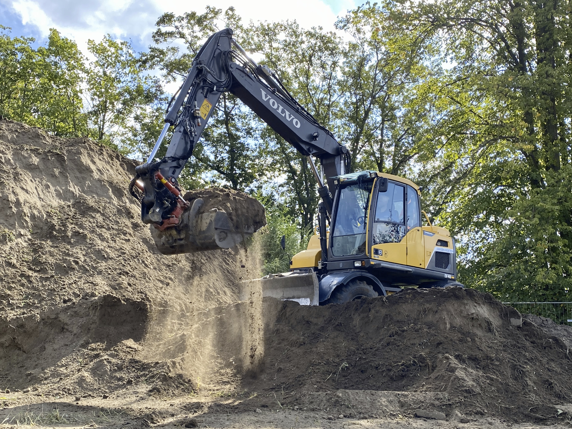 - Tuinaanleg: Met de mobiele graafmachine of op moeilijk bereikbare plekken met de minigraver. Vijvers en poelen worden ook aangelegd, hiervoor biedt het draaikantelstuk en de vleugelbak uitkomst.